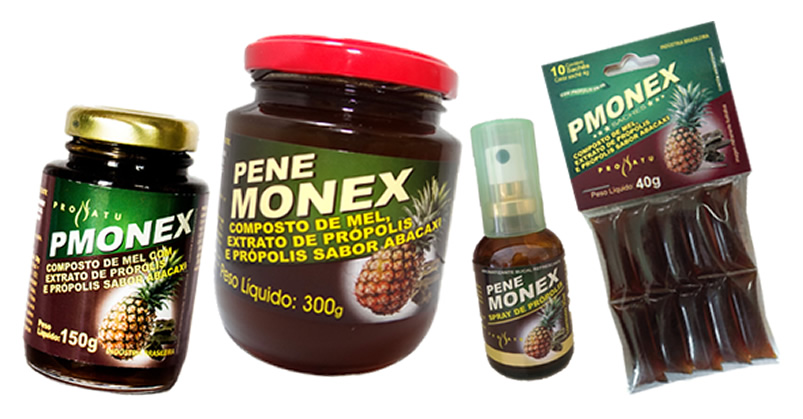 Pene Monex é o produto mais tradicional da Pronatu, fabricado há muitos anos com a mesma formulação exclusiva, exatamente com os mesmo ingredientes e a mesma maneira de fazer de sempre, composto de mel puro, extrato de abacaxi e grande quantidade de própolis, que dá pra ver pelos pedacinhos que ficam na superfície, único composto com essa característica.